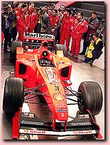 The task of lifting the veil (an enormous flag with the Scuderia Ferrari emblem) covering the car was entrusted to the 450 members of the Sports Management, who were thanked by the Chairman, Mr. Montezemolo and by the Sporting Director, Mr. Jean Todt, for the work carried out in the last few years, which has twice brought the team very close to winning the World Championship. Mr. Todt promised an even greater effort for the season which is about to begin: "We shall be even more determined because we want to lead from the first race, not from the sixth on." Technical Director Ross Brawn outlined the car's general features. "The F300 was the first car built in Maranello by the new working group: it was very good but not perfect. During last season we strengthened the team, enlarging the aerodynamics and R&D groups. Moreover, we began to use the new wind tunnel. The F399 is an evolved model with many innovations. The integration between chassis and engine and the relation with the new technical partners, in particular with Bridgestone, were crucial in the designing stage. We made important changes to the original project on the basis of the results of the tests carried out in Suzuka last November."