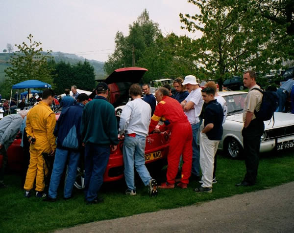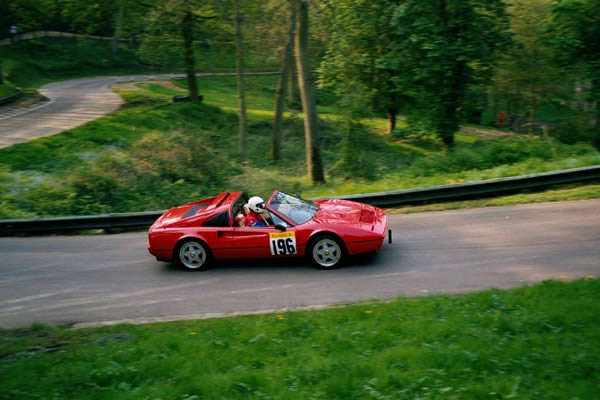 FERRARI HILLCLIMB CHAMPIONSHIP The star attraction was undoubtedly Geoffrey Rollason's 360 Modena and he led the practice times ahead of current champion Robin Ward (308GTB) and series returnee Brian Jackson, whose 355 Challenge had finally been allowed into the Championship. John Marshall (328GTB) also looked strong during the practice runs. The first competitive run on Sunday saw Brian Jackson throw down the gauntlet with an impressive 50.92 secs, which was to be a class leading time until Rollason beat it in the howling 360 with a controlled 49.54 sec run which set a new class record. Closely behind came Ward and Marshall, with Keith Maddox (328GTS) slotting into fifth place. The second afternoon runs brought slower times for Rollason and Jackson but Robin Ward, never afraid of moving his car around, improved by over 1 second to post a 50.25 which was enough for second place ahead of Jackson. Ward's time, incidentally, was quicker than any 308/328 had ever done before. John Marshall improved in the afternoon to a personal best and secured fourth place, ahead of Maddox and Andrew Duncan (328GTS). Mike Spicer (308GT4) and Stuart Bailey (246GT) rounded off the other contestants in the class. With the PEP percentages applied Ward easily took the maximum points towards the championship and now joins Marshall at the top of the table after the first two rounds. The next round takes place at Harewood on Saturday, 13th May. FERRARI HILLCLIMB CHAMPIONSHIP RESULTS : ROUND 2 : PRESCOTT : 6/7 MAY 2000